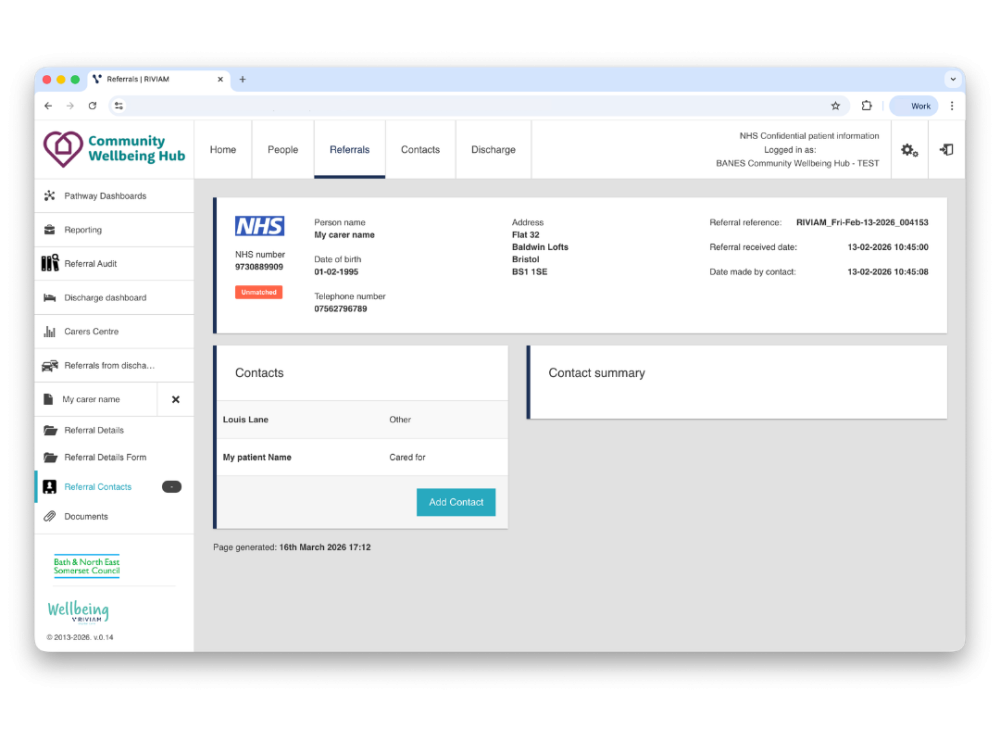 For one customer, Bath and North East Somerset (BaNES) Community Wellbeing Hub (CWH), one of the clearest examples of this issue is when a professional is referring both a person and their carer, and referrals need to be completed for both in one referral. Previously, that meant the referral would arrive with information and requests about the person and not the contacts around them.