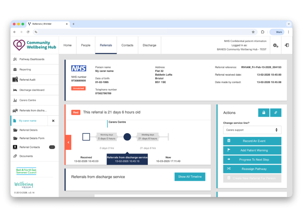 “RIVIAM and the Community Wellbeing Hub (CWH) partners worked closely to co‑design improvements that support a collaborative, person‑centred approach. We are pleased with the new feature, which highlights carers at the very start of an individual’s referral journey. This helps ensure that support for the whole family can be put in place as early as possible. The ethos within the CWH is that partners actively shape the solutions, and thanks to RIVIAM’s openness and willingness to engage, this improved functionality has been successfully created.”