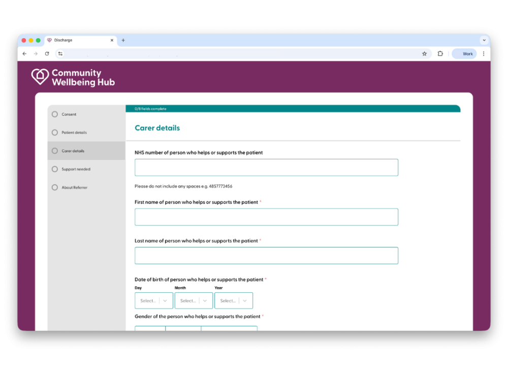 That means the carer’s details are not simply captured as background context. They become a distinct referral pathway for the service that will support them.